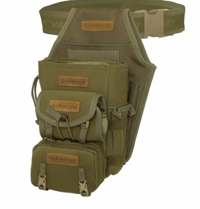 The Elevation Terra MGS Sleeve Quiver Package combines the Terra Sleeve Quiver, Utility Pouch, Rangefinder Case, Utility Box, and Pro Shooter’s Belt, offering a modular setup for 3D archery. Designed for ambidextrous use, the system integrates seamlessly with the Elevation Modular Gear System (MGS), providing adaptable storage and organisation on the course.