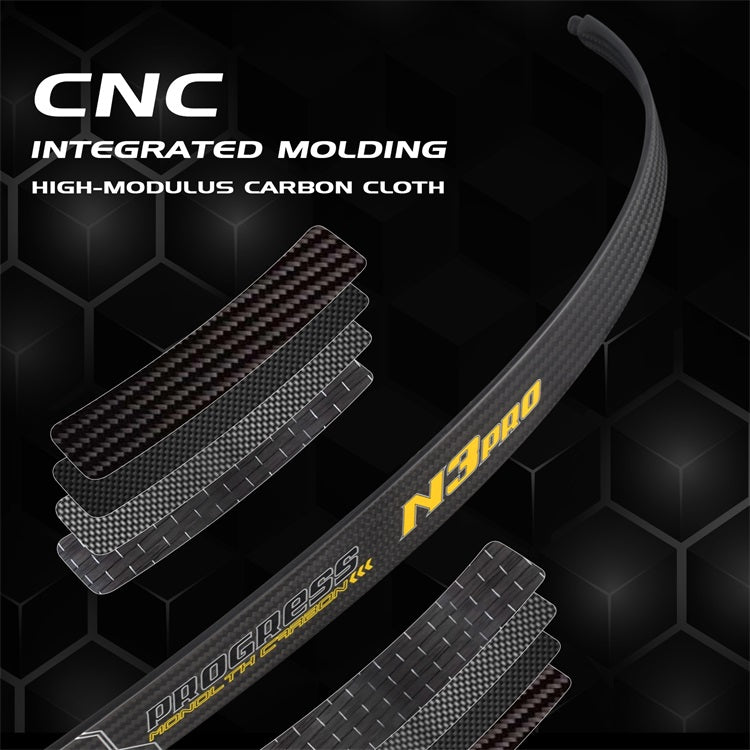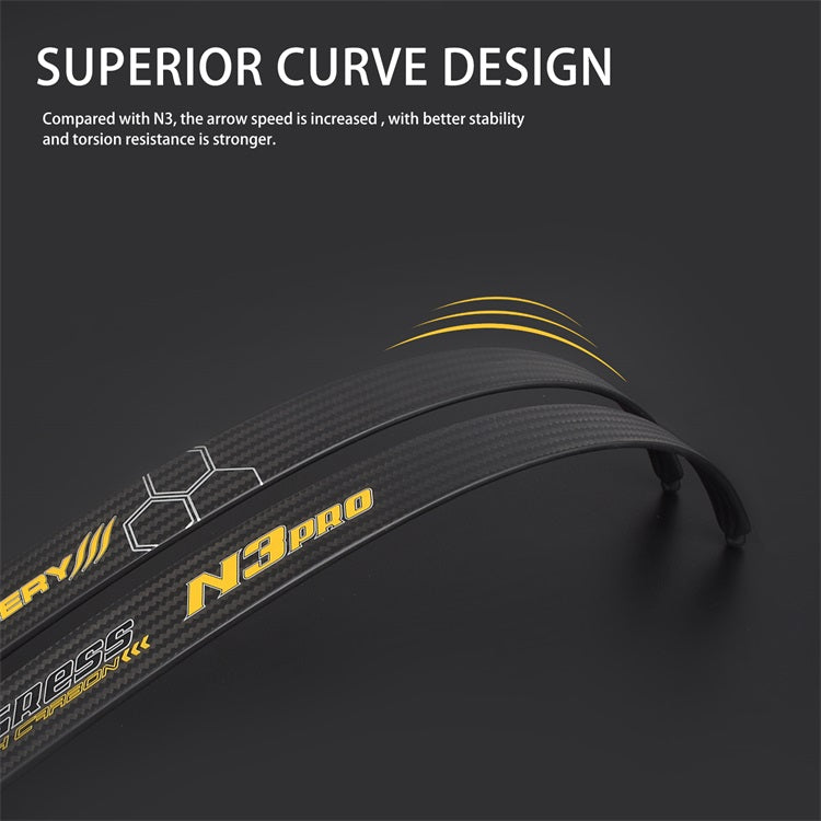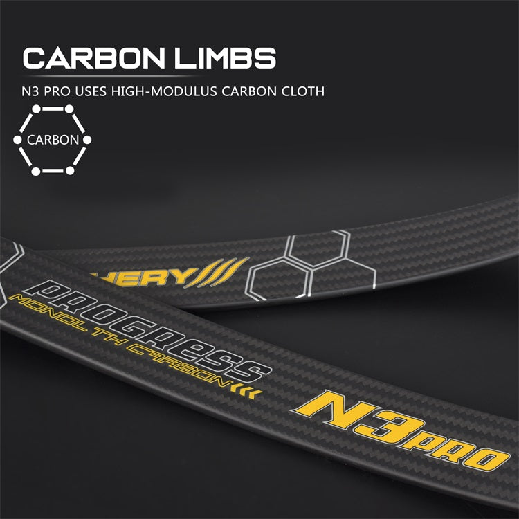 Uses high-modulus carbon cloth, and re-selects more excellent material makes the bow limb lighter and the draw feeling is greatly improved. Compared with N3, the arrow speed is increased with better stability and torsion resistance is stronger.