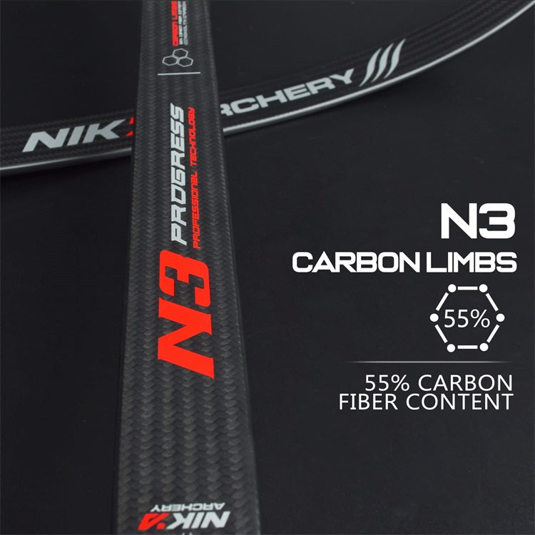 NIKA ARCHERY - New Logo N3 Progress Series BLACK 55% Carbon Fiber Limbs (NIKA N3 - 弓片)
